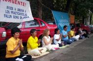 学员们到达使馆将横幅挂好后,立刻开始炼功并发正念。整个下午,学员们有的演示功法,有的发资料,向路人讲真象。一位国际特赦的代表也来加入了我们。活动结束后,学员们继续沿途在街道两边和在地铁站向路人发真象资料及讲真象。