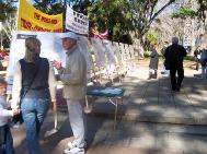 7月20日,为了進一步向广大的澳洲民众揭露江集团的国家恐怖主义暴行,呼吁停止虐杀法轮功学员,悉尼法轮功学员再次于市中心的海德公园举行反酷刑展和图片展。学员在公园的草地和平炼功,同时向过往的行人讲真象和征集谴责江氏南非雇凶企图谋杀法轮功学员的签名。很多行人驻足观看,他们被法轮功学员祥和的炼功场面所吸引,同时他们也被酷刑演示所展现的残暴深深震撼了。行人们主动签名和拿真象资料,并向学员表示了他们对受迫害的法轮功学员的深切同情和对江集团暴行的憎恨与厌恶。