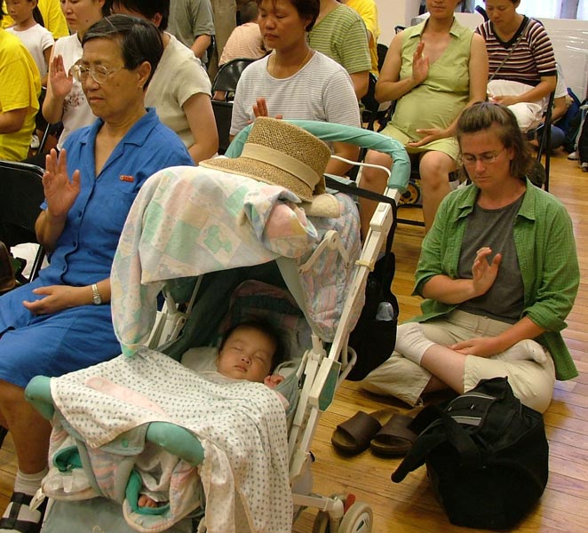 1、年龄各异的大法小弟子2、法会正式程序从晚6时的全球同步发正念开始3、宣读修炼心得交流稿并表演讲真象的文艺节目