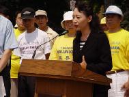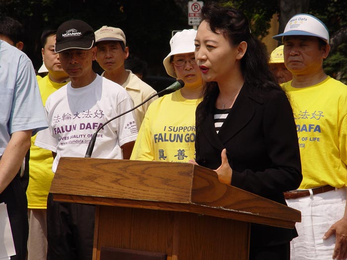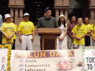 多名来自社会各界的人士今天也特意前来参加集会表达他们的支持。其中包括民主阵线副主席,人权活动家盛雪女士。自从中国江氏集团五年前开始了对法轮功的残酷迫害之后,她一直给予法轮功学员极大的同情和支持。盛雪女士表示法轮功学员过去五年来不屈不挠的和平抗争已经改变了中国的历史。她呼吁大家一起来结束江氏集团在中国实行的国家恐怖主义。