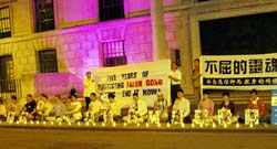英国法轮功学员中使(领)馆前烛光悼念同修(图)