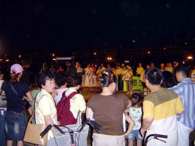 韩国主要电视台之一的KBS2记者现场采访了学员。整个悼念活动晚十点结束。