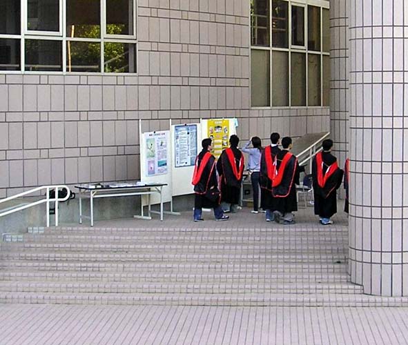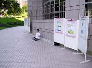 另一方面,我们将原本很靠近毕业典礼会场的图片展,往后移了一些,也就是在常人的这一面,也做的圆容一些,也让人们可以理解。于是当天晚上,我们就把图片、摊位、资料都给摆了出来,迎接明天毕业典礼的人潮。