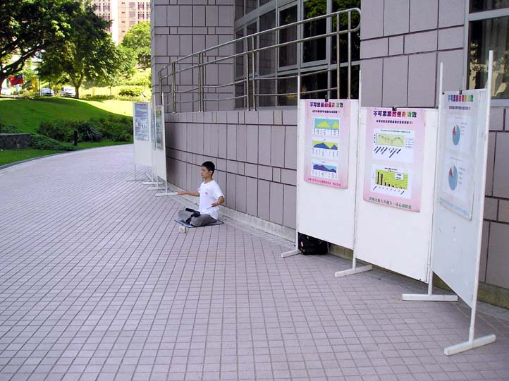 首先图书馆典阅组组长听到学员要借场地设置图片展马上答应,并关心的询问每天在图书馆前炼功的情形,在随后的接触中他也表达了想学炼的意愿。而同时法轮功学员走遍校园让所有的教职员都能知道将在交大举办的教师研习营九天班,过程中许多教授表示在图书馆旁看到我们的图片展,这一系列的活动也为7月5-13日的法轮功九天学法炼功班铺路,让更多人知道。