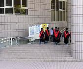 伴随一年一度的毕业典礼,当天人潮汹涌,学员向他们一一发送资料,用最和平的方式使上千人了解法轮功的真象。法轮大法在校园的洪扬就是最好的真象。在过程中,学员还進行了功法表演。虽然参与的人数并不多,但是大家都很尽心尽力的希望让更多人了解法轮功真象,做着自己应该做的事。我们一直发传单直到晚上九点多,以及毕业典礼结束之后的半个小时。