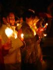 学员们手持蜡烛,静静的站在中领馆的对面,追悼五年来被迫害致死的同修。一支支蜡烛就象一颗颗真诚的心,呼唤着世人的良知。狂风一次次将蜡烛吹灭,又一次次被重新点燃,就象法轮功学员那坚韧不屈的精神始终在黑夜中闪光,同时也象征着法轮功学员在用心呵护着世人那一点未泯的良知,不让它熄灭。