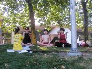 ![]() 在西雅图中心草坪上炼功 | ![]() 来自以色列的母子学炼功法 |