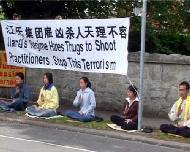 • 英国曼城法轮功学员中领馆前抗议江氏集团雇凶杀人(图)