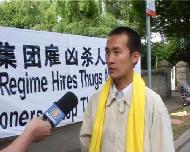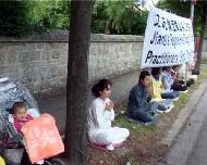 6月30日上午,比利时法轮功学员来到布鲁塞尔的中国领事馆前,强烈谴责江氏流氓集团在南非雇凶杀人的恐怖主义行为。来中领馆办事的中国人惊闻这一事件后,纷纷接受有关资料。
