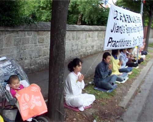 2004年6月30日,日本大阪的部分法轮功学员聚集到中国驻大阪领事馆请愿,谴责6月28日在南非发生的针对法轮功学员的雇凶杀人的恐怖事件。