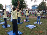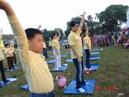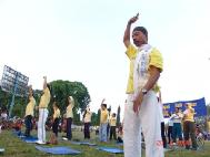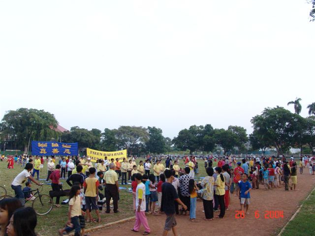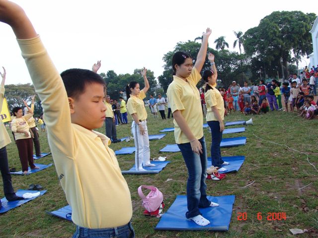 2004年6月26日,大费城法轮功学员应邀参加费城北部“信圣经无派别教堂”组织的“路上无暴力”社区活动。法轮功学员表演了五套功法,腰鼓,扇子舞,和舞狮,引起人们热烈的掌声。功法表演后,学员当场教功,很多人都饶有兴趣的学炼了功法。