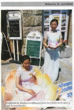 我们的活动也通知了当地的报社。报社也纷纷刊登了活动预告。市民节上的法轮功得到了当地三家报社的关注。本周相继刊登了我们的照片和简报。
