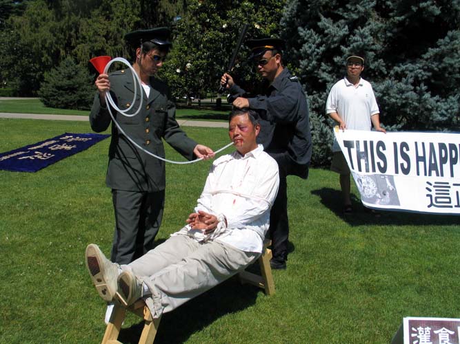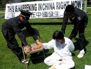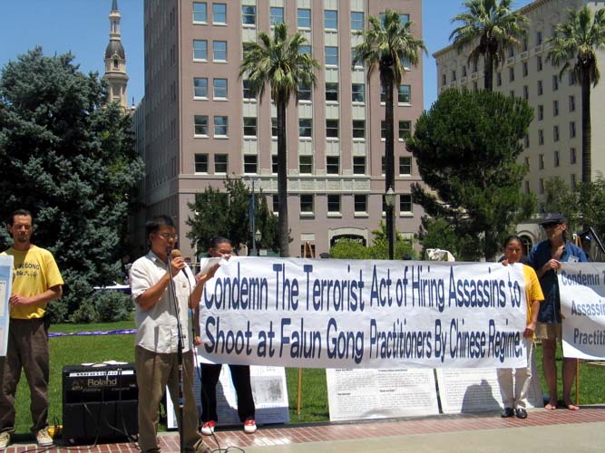 6月29、30日连续两天,北加州的法轮功学员还在州政府大楼前举行图片展和真人酷刑演示,并向过往的政府官员、游客、和行人揭露江氏流氓集团残酷迫害法轮功的真象。发生在南非的雇凶杀人恐怖事件使人们更能看清江氏集团的流氓恐怖主义面目。