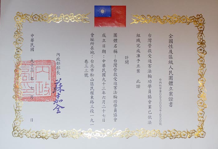 『台湾营救受迫害法轮功学员协会』正式成立(图)