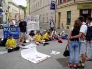 一些学员在布尔诺市主要的公园-鲁赞克伊(Luzanky)公园每周四次教功,他们遇到许多来学功的人们,人数不同寻常。他们向人们介绍了何处可以找到炼功点。很令人鼓舞的是我们看到五个学生也加入了学功的行列,并和学员们一起在大街上打坐。
