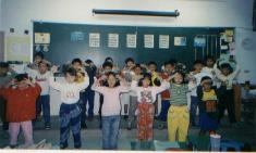 平时很多小朋友要求我教功,除了社团课外,时常利用课余时间指导小朋友炼功。夏天到了天气炎热,有小朋友上体育课就要求炼功,问他们为什么那么爱炼功,他们都说因为法轮功炼起来好舒服、好轻松。有小朋友常跟我说:老师你越来越年轻,我就鼓励她学大法。有一个小朋友患有先天性心脏病,常常身体不舒服,不能做激烈运动,每次体育课就在旁边发呆,有一天上课时她脸色发青,表示很不舒服,我鼓励她学大法,她说不要炼,无论我怎么说法轮功多好,她就是不炼,我改变祛病健身的话题,说到学法轮功要做真、善、忍的好人,并解释这三个字的意思,讲完后我问她“真、善、忍”好不好,她说好,就想学了。我叫她念“法轮大法好”,念完后她很高兴的告诉我:她的病好了。以后她就跟我学法轮功了。