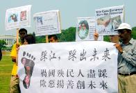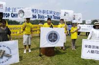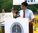 ![]() “追查国际”代表杰夫王主持集会 | ![]() “保卫言论自由人权同盟”代表黄祖威博士 | ![]() 人权律师,中国问题研究专家叶宁发言 |