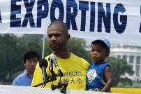 华府地区法轮功学员代表凯斯(Keith Ware)说:“我的家里被安装了窃听器,电话被窃听。我为什么知道?因为我2002年2月份去天安门广场请愿,被北京警察非法抓捕,警察告诉了我。”“受迫害的数千万法轮功学员,没有一人反对中国政府。”