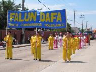 法轮功学员参加美国德州布兰诺市独立日大游行(图)