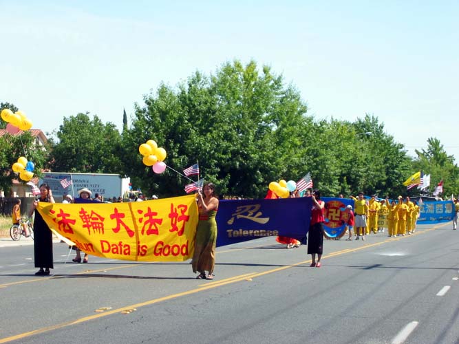 【明慧网2004年7月6日】2004年7月3日,北加州法轮功学员第一次参加了科多瓦牧场市(Rancho Cordova)的美国独立日游行。