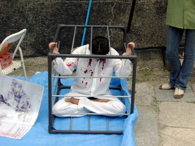 当第一批目睹这一迫害场景的游客来到这一演示现场后,面对这一场景即惊愕不已。他们起初以为学员们在演出一种自编的戏剧。当学员们向他们解释道,这正是目前每天在中国发生着的真实场面后,许多游客,特别是一些西方以及一些来自亚洲地区的游客不断的叹气、摇头。他们表示,在人类已经進入了二十一世纪的文明之后,居然还会出现这种类似中世纪的野蛮行为,这是无论如何不能容忍的。