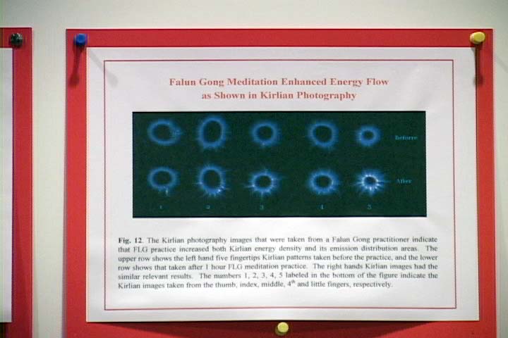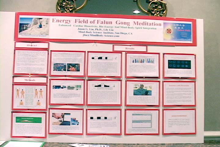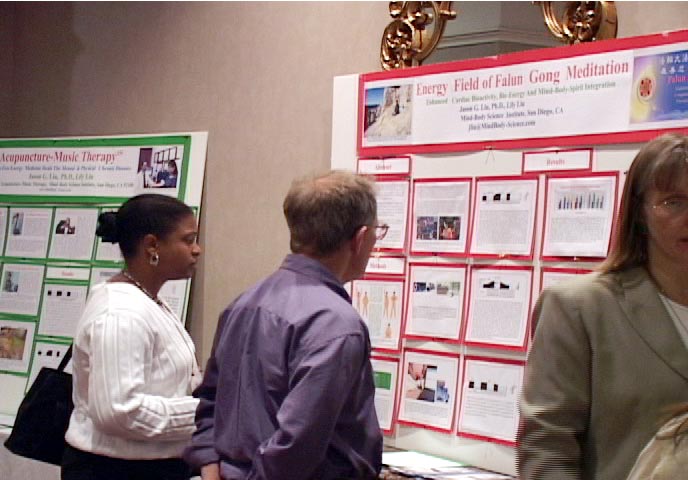 会议期间,法轮大法的科学报告十分引人注目,引起了众多领域的专家们的热烈讨论。南加州身心科学研究院的刘博士及其助手,用他们在细胞水平上的科学实验和身心整体治疗的临床研究数据有理有据的展示了法轮功的修炼能量增强人体细胞的生物活性、促進人体气血能量循环和增進身心健康的功效。他们的研究以严谨的科学方法证实了法轮功修炼场的能量性和物质性,以事实向人们展示大法是超常的科学。