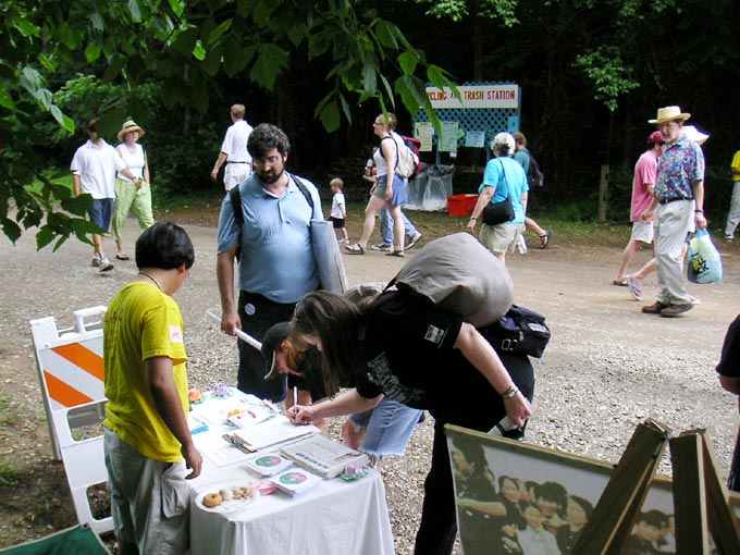 大幅洪法图片使人们了解到大法美好,很多游客仔细观看了每一张图片。展亭另一侧法轮功学员遭到暴力和酷刑折磨的图片令人们震惊,纷纷在呼吁停止迫害法轮功的请愿信上签名。从签名信上我们发现,除当地及附近城镇的居民外,还有来自波士顿、纽约、乔治亚州甚至加拿大的。