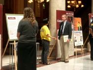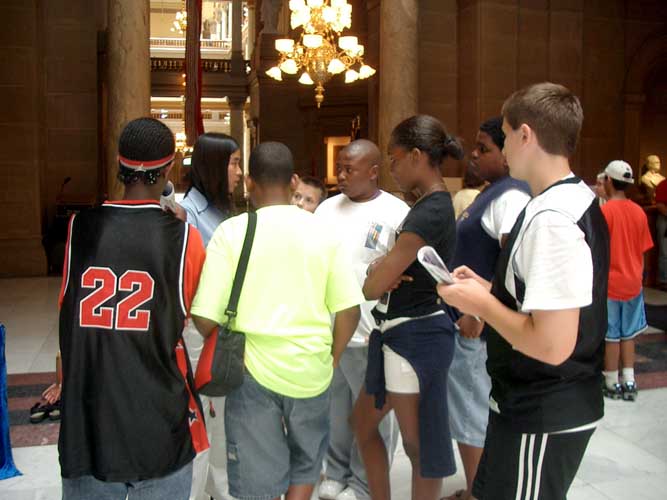 一群台湾高雄医学院护理系的访问学生也来到州政府大厅参观,当他们收到大法传单后,有人即说这是法轮功,我们台湾也有而且到处都有人在炼,其中一名学生说,在台湾法轮功受到政府及人民的支持而且炼功的人相当多。他对江氏集团迫害法轮功相当不解。当学员向他解释了详情后,他表示,实在没道理迫害这样一群好人。