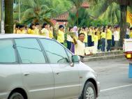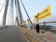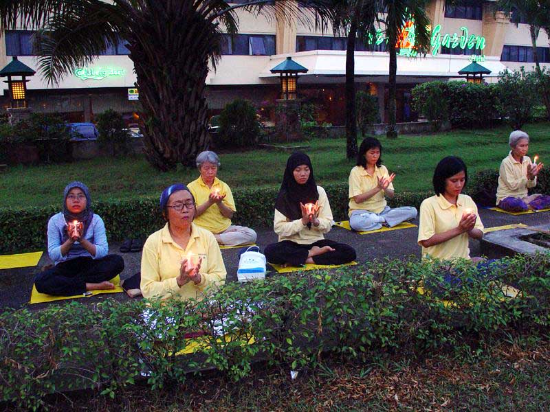 ![]() 烛光守夜 | ![]() 在峇淡大桥上炼功 | ![]() 合影 |