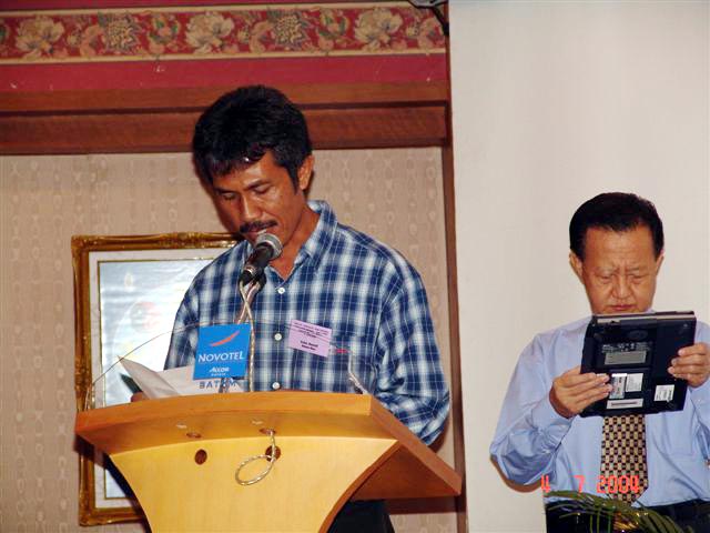 第二天一大早,学员们来到该岛旅游景点之一的峇淡大桥上,炼功和发正念。在法会上,很多发言的学员都是印尼原住民。他们得法修炼最短的只有三个月,最长也不多于两年。他们用印尼语与大家分享了他们修炼法轮大法后身心的受益,并且表达了他们对师父、对大法的感激之情。