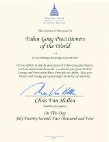 你们为结束在中国和世界其它地方发生的对法轮功学员的迫害所做的努力。我赞赏你们的“勇气长城”和“迫害与原则画展”。祝你们的勇气和精神给你们面对逆境的力量。