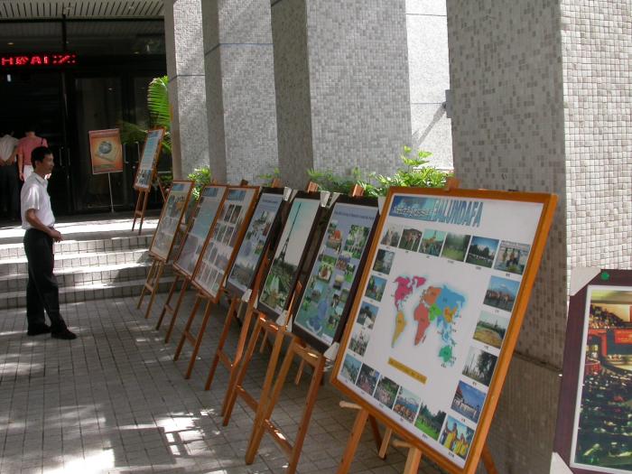 会场外有正法之路图片展,及大法相关书籍展览,在休息时间总是围满了人驻足欣赏,还有很多老师们表示:真希望主办单位可以代售大法书籍及炼功带,因为他们实在迫不及待想拥有一本《转法轮》来先睹为快呢!