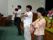 有多位老师表示:主办单位策划精心,工作人员态度亲切自然,而且整个研习会会场弥漫一股祥和之气,让人心灵变得更清明了!第一天研习会结束后,有几位安庆国小的老师还特地留下来跟法轮功学员讨教功法,切磋功法动作时,各个老师自然流露出宁静祥谧之神态,让人动容!