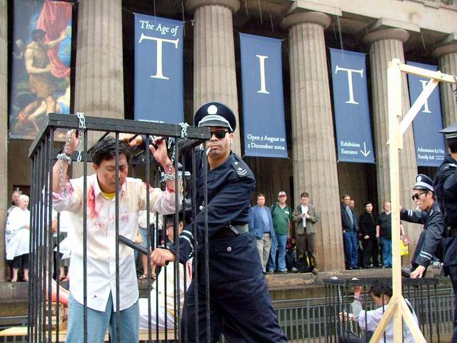 此刑过去仅对男性犯人施行,而现在为了迫害法轮功,则根本毫无顾忌的不分男女一律進行加害。