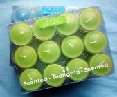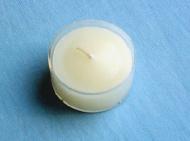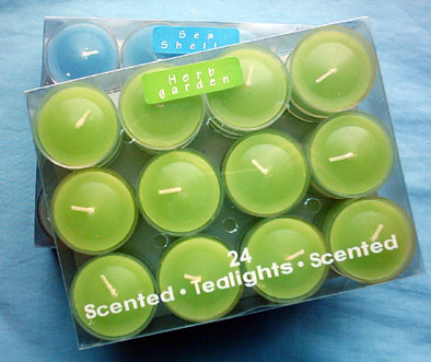 加工蜡的工序为(见图):将整箱的蜡抬来,倒在工作案板上,通常两到三人一组负责一个案板。先用铁钎子(20-30厘米长)从蜡的底部向前穿眼,再穿蜡捻,扫掉蜡屑,装进透明的小圆塑料盒,装外包装盒:先在盒底放一张纸板(一面为银色,一面为英文说明),每盒装上24只蜡,盖上盒盖,上方贴上对应颜色的标签纸,盒底四面用圆形透明胶粘上,即可装入小纸箱(每箱六盒)打包装。再把小包装纸箱装入更大的纸箱。