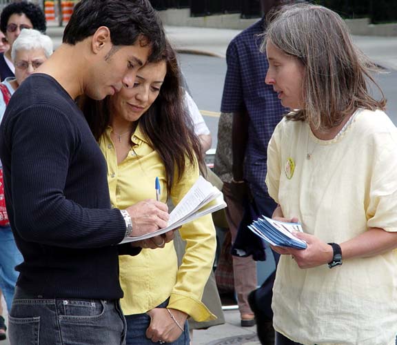 加魁省法院入口展酷刑,善良人要审江泽民