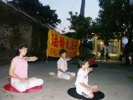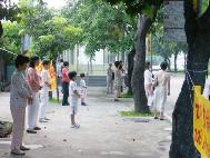 学炼第五套功法的阿嬷 |   在捷运出口的洪法炼功 |   在捷运出口的洪法炼功 |