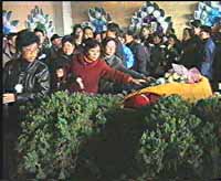 | 赵昕遗容 | 等候向赵昕告别的人们 | 人们向赵昕献上鲜花 |