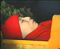 2001年1月22日,他被当地公安局接回后,已经是奄奄一息了,只能喝一点水充饥,由于公安局怕担责任,就让他家人把他抬回家,尽管这样,警察还向他家属勒索钱财近2000元。照片是他回来后第3天即1月25日照的。