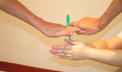迫害方法就是用一个柄是扁的牙刷(比照片上的那牙刷柄要扁很多)塞到手指缝中,由一个犹大用手把学员的手指强制的合并在一起,再由一个犹大在下面用双手转那个牙刷。
