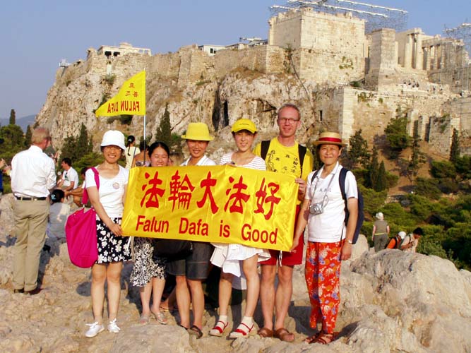 一位女华侨带着她的两个法国朋友来到了广场,当她看到发资料的法轮功学员后,学员们向她讲解了正在中国发生的迫害。她转而又向她的朋友们進行了翻译解释。她对大法弟子说,镇压法轮功是不对的,在奥运会期间看到你们在这里这样做(炼功讲真象)很好,就是应该这样做。她的一位法国朋友说,这次你们在希腊这样做,2008年你们应该在北京天安门这样做,特别是西人法轮功学员!发资料的大法弟子说,我相信会有这一天的。这位法国朋友回答说,我也相信你们一定会有这一天的!
