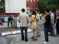 有的人流着泪看完展板介绍法轮功学员在中国遭受的酷刑折磨。人人纷纷在谴责江泽民集团对法轮功学员的迫害本上签名,呼吁立即停止迫害。
