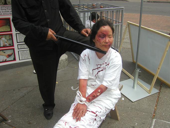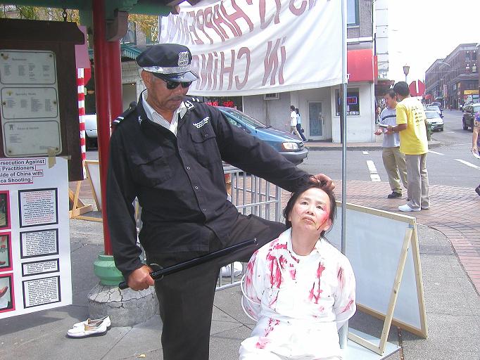 西雅图法轮功学员在唐人街与市中心举办酷刑展(图)