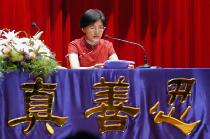另一位发言人张锦华是目前台大新闻所教授兼新闻研究所所长主任,繁重的行政工作和教学研究令她在修炼和工作中曾感到迷惘。但透过静心学法后发现现在不会再去想到忙碌这二个字,而是把工作落实在修炼中,碰到任何事都以修炼人的角度去对待,现在台湾最高学府又要她接下某研究中心主任的工作。