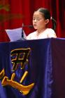 一位年仅5岁的小弟子用童稚的嗓音述说着她在幼稚园与同学之间的互动及如何用“真、善、忍”来要求自己做一个更好的人,一字一字慢慢描述和玩伴之间的小冲突及和大人的互动,小弟子的纯真与宽容触动全场观众,大家都报以热烈的掌声。