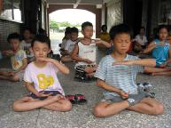 ![]() 小朋友很快学会双盘 | ![]() 认真学炼第四套功法 | ![]() 全体合影 |