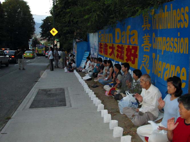 【明慧网二零零四年八月二十二日】2004年8月20日是温哥华法轮功学员在中领馆前连续24小时和平请愿三周年的日子,温哥华学员晚上在中领馆前举行了烛光纪念活动。8月19日,当地最大的英文报纸温哥华太阳报(Vancouver Sun)主动打电话给法轮功学员,提出要采访、报导这个已经历时三年的请愿活动。8月20日温哥华太阳报以较大篇幅登载了这个报道(附后)。