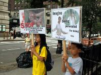 看我们的反酷刑展,纽约人哭了。一位女士在签名的一瞬间,泣不成声,与我们的大法弟子拥抱;一位男士也落了泪,还有很多人眼里含着泪;两天自愿来我们这个小组签名的就有500多。有人回去后写了给布什和中使馆的信又送来,有的回去后又打来电话告诉我们他知道的媒体的电话,有的提供能帮助我们的部门的信息。