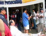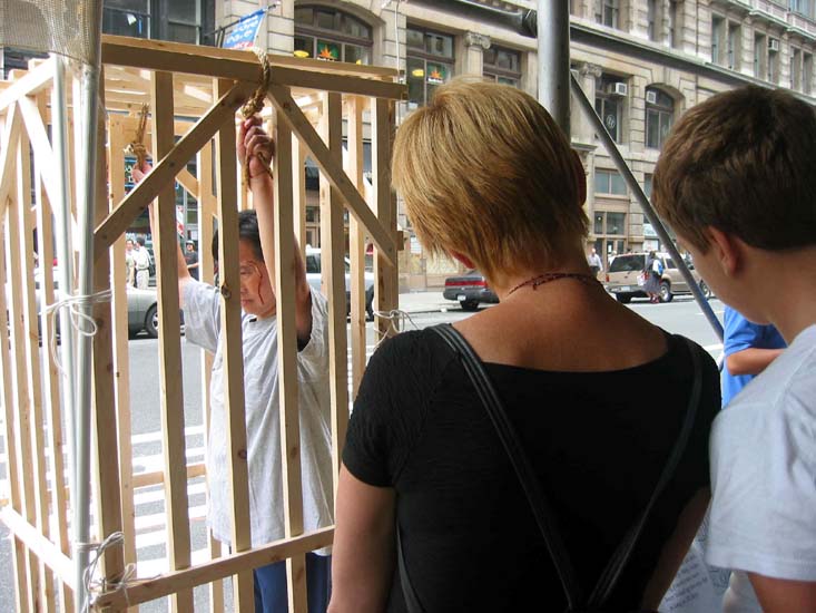 凝重的音乐声、惨烈的景象反衬出法轮功学员面对魔难依然坚贞不屈的精神,使路人震惊和感动。人们纷纷接过传单,在反迫害的签名表上签名并询问如何能更有效的帮助法轮功学员。