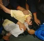 2001年7月末,一大队中队长赵燕到东三房说:“董敬哲,拿着东西,给你换个房间。”我被调到西二房。因为东三房的人看清了善恶,不愿再替队长们折磨人,东三房的“班长”在开班会时向我保证:以后东三房不会再有打人的事发生(2001年10月,东三房被解散,大部分人被大队长杨敏分到二大队)。2001年8月7日,副大队长李生原将24小时没睡觉的我叫到办公室门口,让我蹲着,我跟他讲事实真象,他大喊大叫,按住我的头拿书打我十多个耳光,我的脸当时就肿起来了。我回到房里,他又过来了,让“帮教”人员帮着,抓住我的头发“哐、哐”撞水泥地(图6、图7),又拿书打我十多个耳光(图8),我头上被撞得起大包,脸上留下一条条书本划的淤痕。当时西二房有十多个人在旁边看到,行凶的场面吓得两名学员当场心脏病发作。